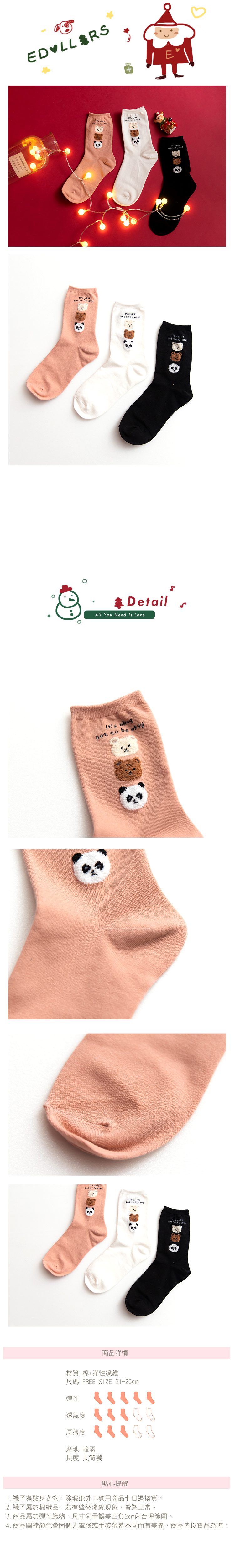 韓國 流行款 三熊頭長襪 棉質 百搭款 超有質感~ 柔軟又舒適!
